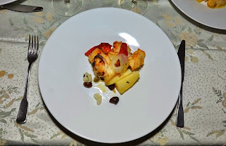 Intanto la squadra di servizio versa nei calici il Lughet 2008: parente stretto del 2009, evoluto, maturo e minerale anch’esso, con in più sentori di idrocarburo, note balsamiche e uno stimolante accenno fumé. Costante la pienezza della bocca e la grinta del nerbo acido, si tratta di un vino variegato, ricco di sfumature e sfaccettature, che ben si sposa con un piatto altrettanto ricco di sfumature qual è il baccala “accomodato”, fritto leggermente e poi passato al forno, contornato di sapori mediterranei e continentali come pomodoro, cipolla, capperi e olive.